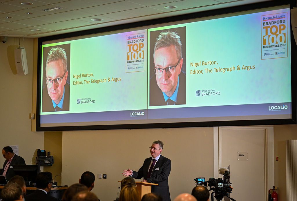 Nigel Burton, Telegraph & Argus editor, speaks at the Top 100 launch event (Image: Andy Garbutt)