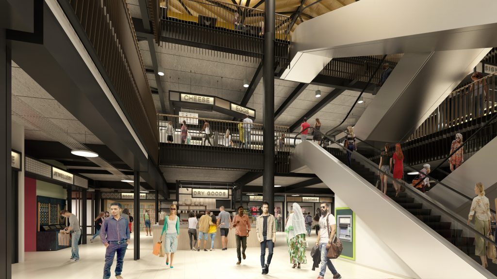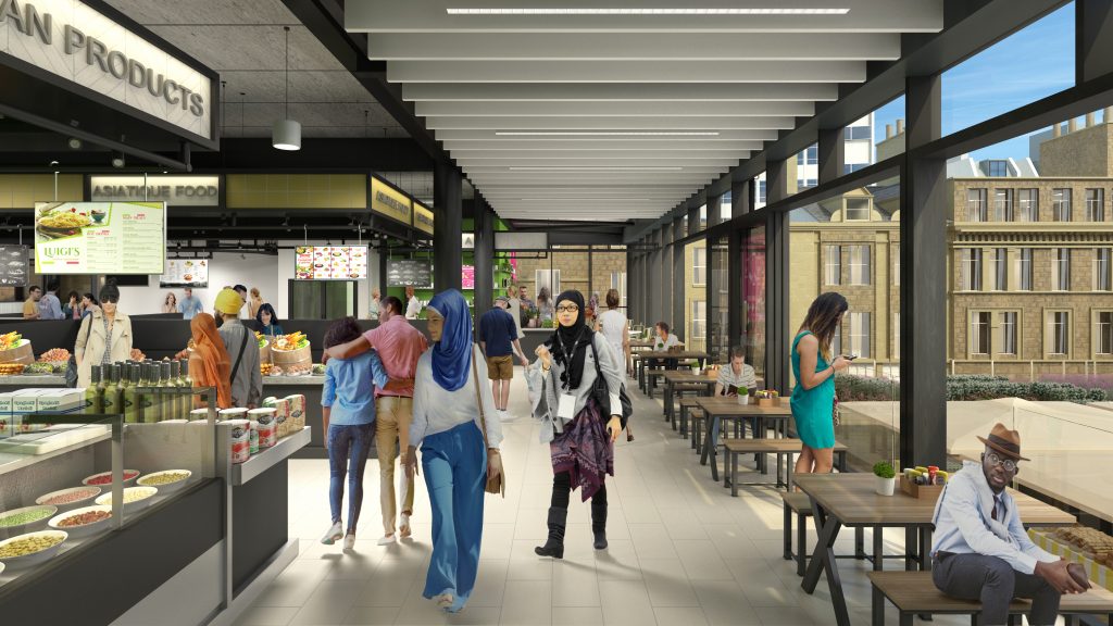 Fresh produce will be sold on the upper ground floor and top floor will house an airy open plan food court which will trade into the evenings to support the local night-time economy. The ground floor will contain non-food offerings.